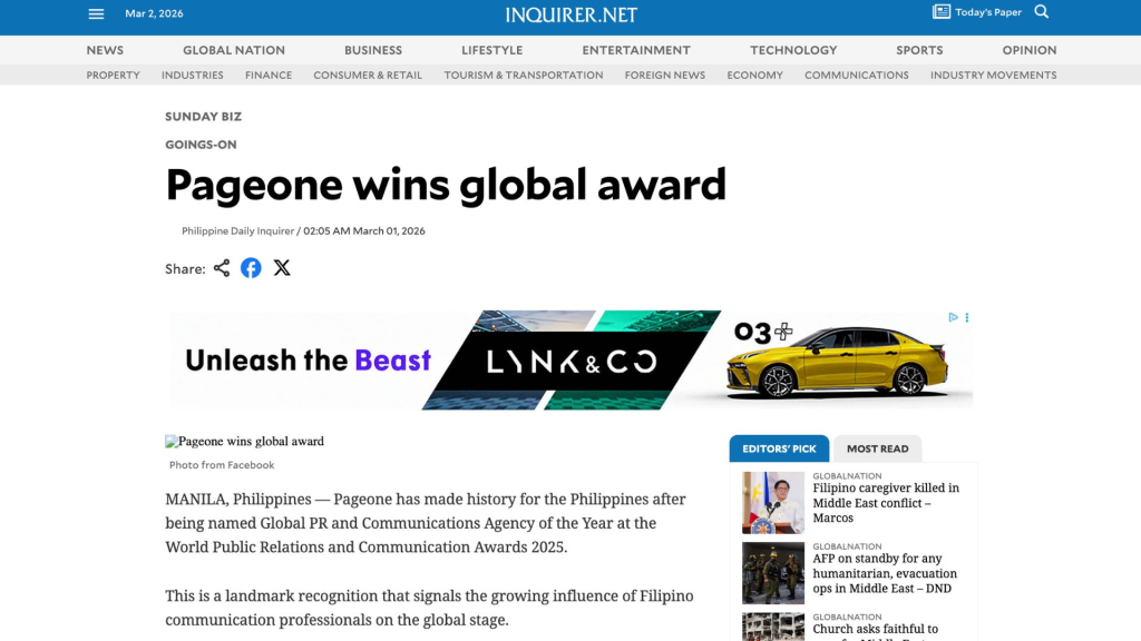 Here, you’ll find a collection of thought leadership articles, creative ideas, and stories that showcase the success of our clients and partners. We highlight their achievements and announcements, featuring coverage from the top print and online newspapers in the Philippines.